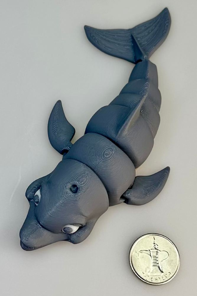 The segmented body allows the dolphin to bend and curve naturally, giving it a sense of motion as if it’s swimming through the water. Its smooth contours, detailed mouth, and clean color separation make it a delightful piece to display, fidget with, or add to a collection of articulated creatures.