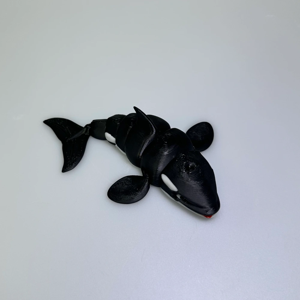 Each connected segment allows the orca to bend and flow naturally, mimicking the graceful movement of a swimming whale. Despite its small size, the details are crisp — from the eye patches to the tail flukes — making it a charming display piece, fidget toy, or collectible for marine‑life fans.