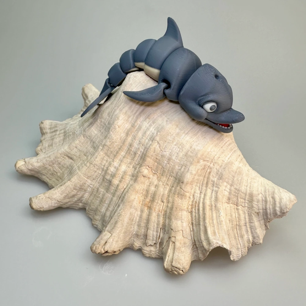 The segmented body allows the dolphin to bend and curve naturally, giving it a sense of motion as if it’s swimming through the water. Its smooth contours, detailed mouth, and clean color separation make it a delightful piece to display, fidget with, or add to a collection of articulated creatures.